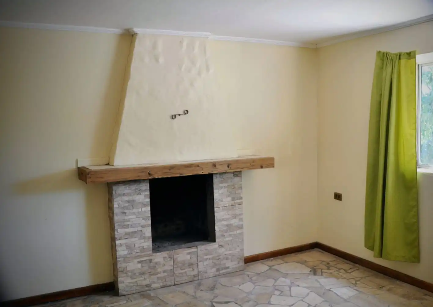 - Living con chimenea y área de lavandería independiente.